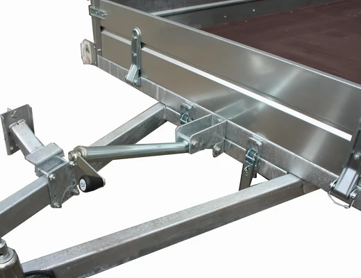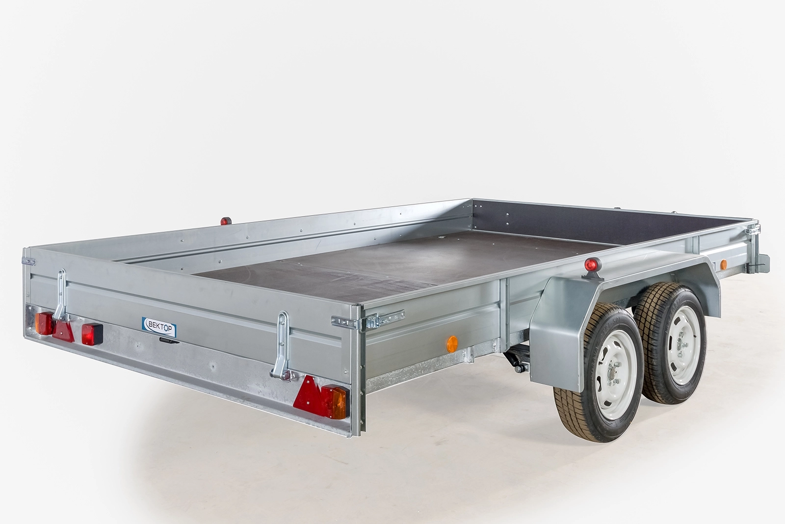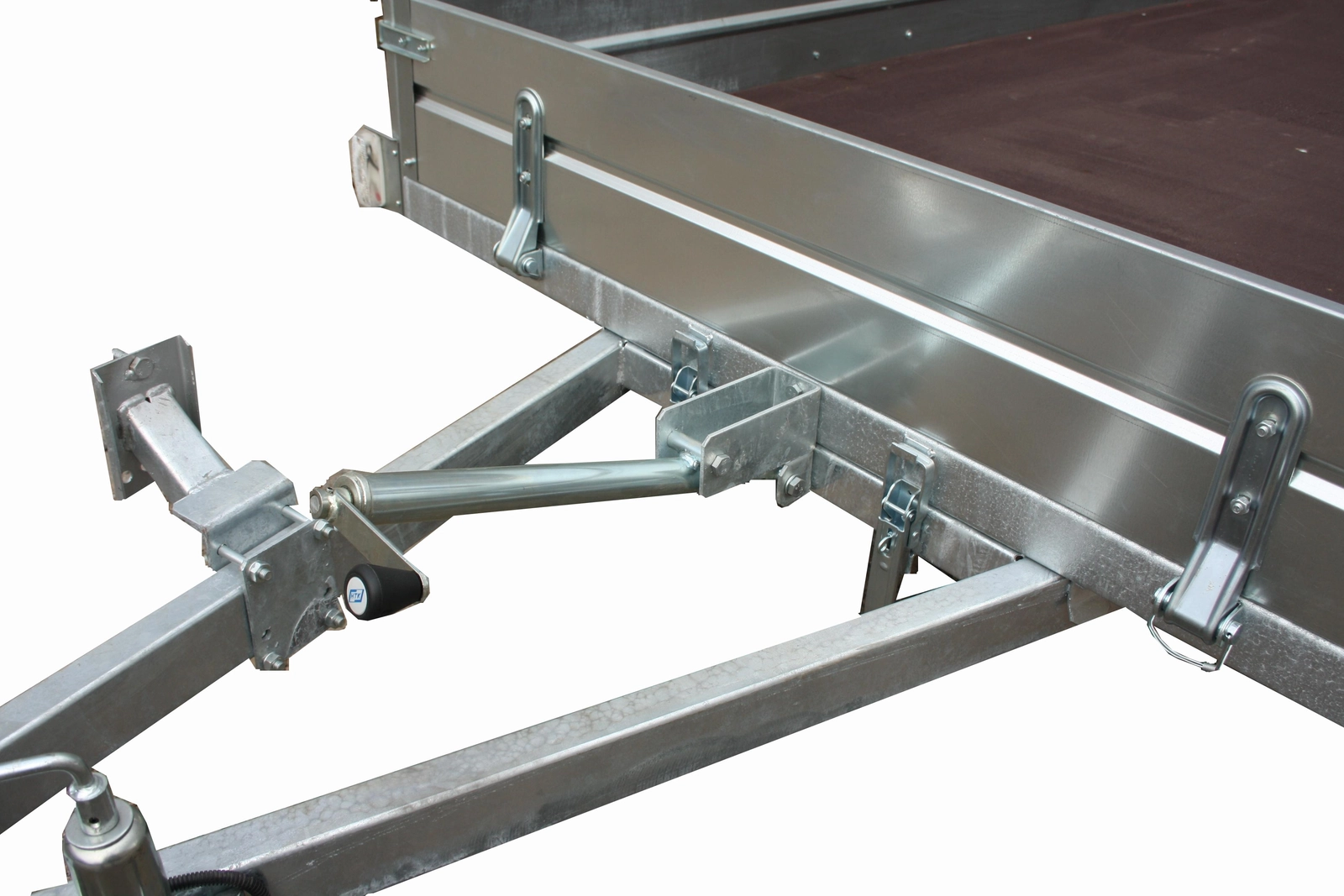 Рама, дышло и ось прицепа полностью оцинкованы методом горячего цинкования изнутри и снаружи. Борта и крылья из оцинкованной стали. Прицеп двухосный, без тормозов, снабжен откидным кузовом, передний и задний борта откидные, с возможностью быстрого съёма, Дышло V-образное. Днище - ламинированная фанера. Подвеска колес (R13) на четырёх полуэллиптических переменного сечения рессорах с гидравлическими амортизаторами. Высота бортов 240 или 380 мм. Грузоподъёмность 345 кг. Фактическая 800 кг.