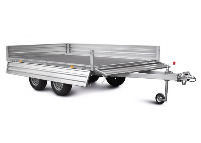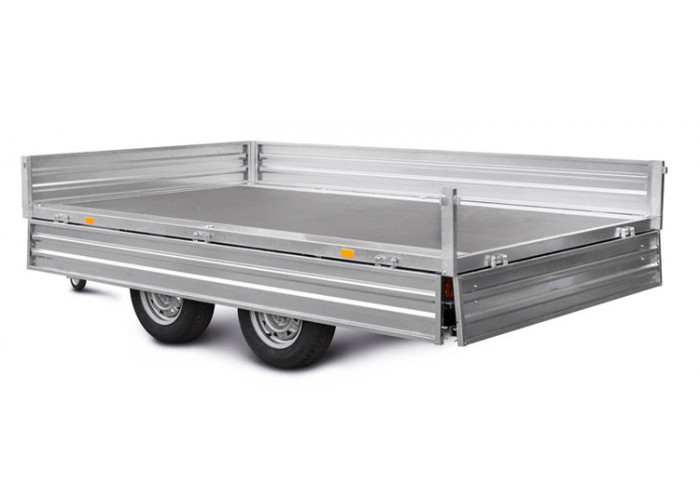 ● Откидные борта дают возможность осуществлять загрузку и выгрузку с любой стороны платформы. Они выполнены из оцинкованного стального листа (толщина 1,5 мм) с дополнительной штамповкой рёбер жёсткости. Рёбра жёсткости позволяют повысить устойчивость бортов к динамическим/ударным нагрузкам. Борта и стойки бортов — съёмные.