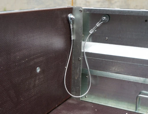Борта толщиной 1,5 мм выполнены из оцинкованного металла с использованием лазерной резки и высокоточной гибки, оборудованы скобами для крепления евро-тента. Устойчивость к деформации, высокую жесткость обеспечивает специальный гнутый профиль борта. Передний и задний откидные борта усилены фанерой, быстросъемные, фиксируются бортовыми замками. Задний борт оборудован тросиками, усилены места крепления тросиков к бортам. Стойки бортов выполнены из 3 мм оцинкованной стали, есть возможность фиксации каркаса тента к стойкам боковых бортов.