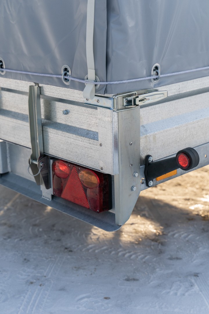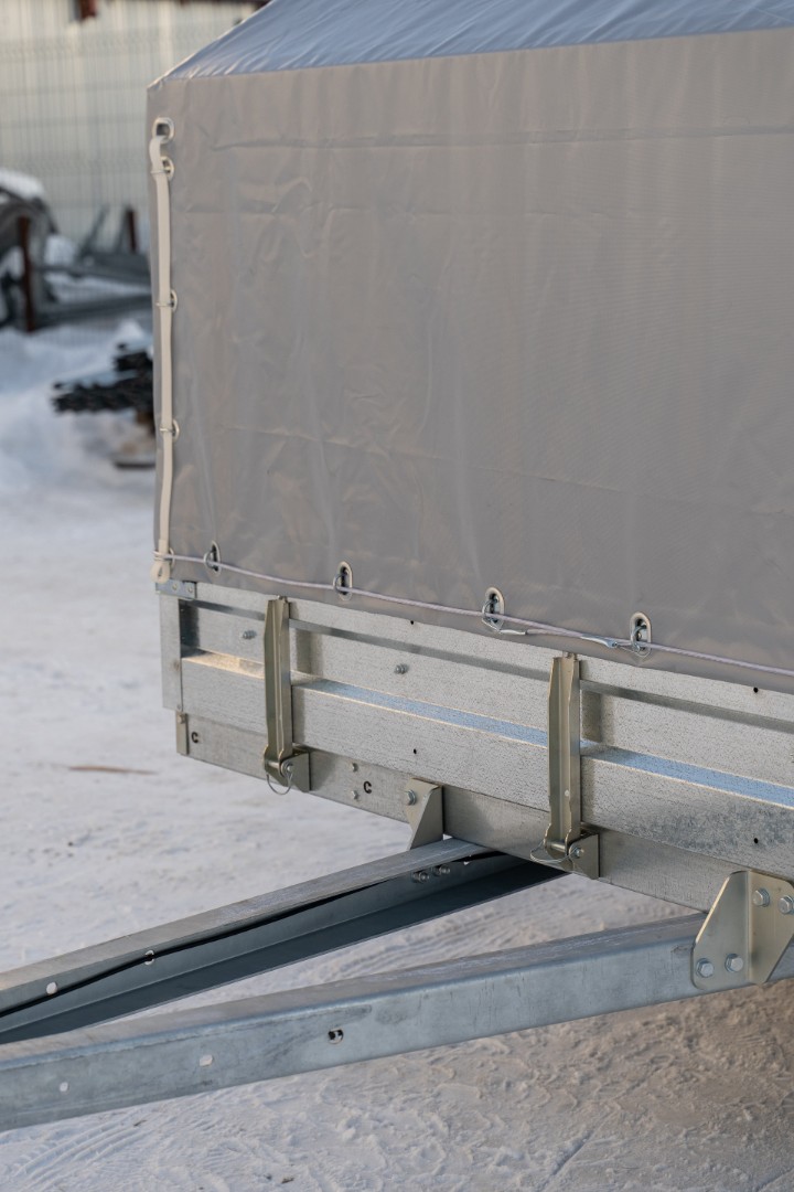 Борта толщиной 1,5 мм выполнены из оцинкованного металла с использованием лазерной резки и высокоточной гибки. Устойчивость к деформации, высокую жесткость обеспечивает специальный гнутый профиль борта. Передний и задний откидные борта усилены фанерой, быстросъемные, фиксируются бортовыми замками. Задний борт оборудован тросиками, усилены места крепления тросиков к бортам. Стойки бортов выполнены из 3 мм оцинкованной стали, есть возможность фиксации каркаса тента к стойкам боковых бортов.