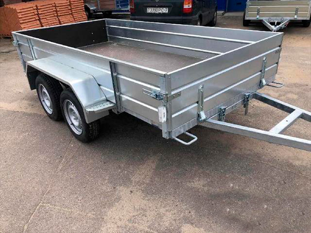 Рама, дышло и оси прицепа полностью оцинкованы методом горячего цинкования. Борта и крылья из оцинкованной стали. Прицеп двухосный, без тормоза, снабжен откидным кузовом, передний и задний борта откидные, с возможностью быстрого съёма. Дышло V-образное. Днище - ламинированная фанера. Подвеска колес (R13) на четырёх полуэллиптических рессорах с гидравлическими амортизаторами.