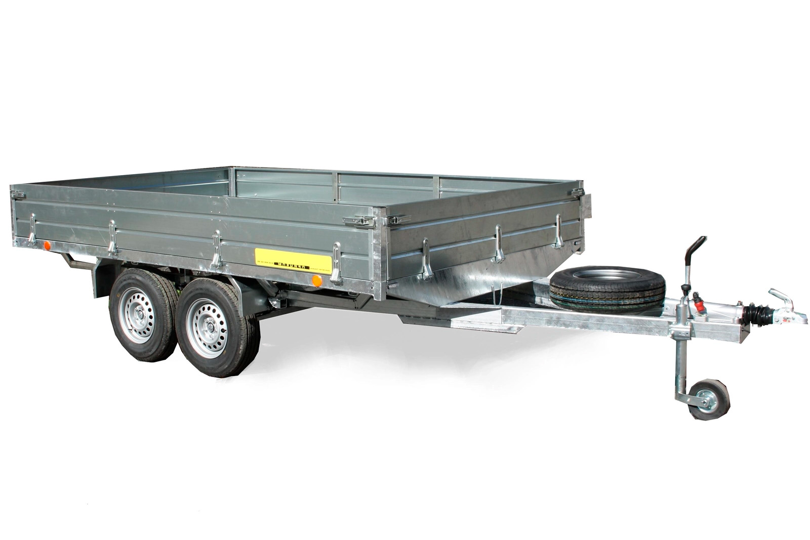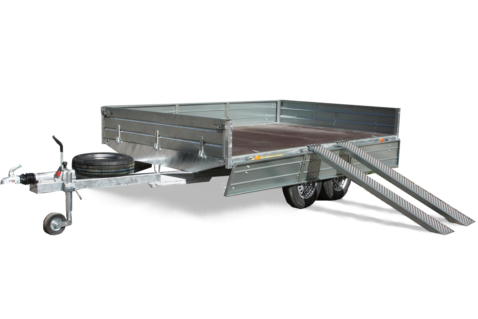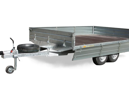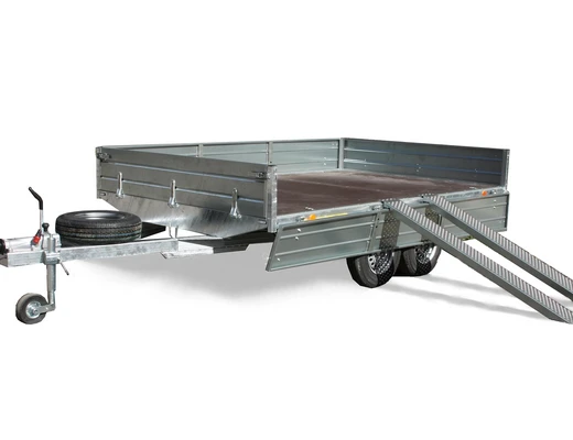 Бортовой прицеп. Оснащён тормозом. Все борта откидываются. Кузов не откидной.