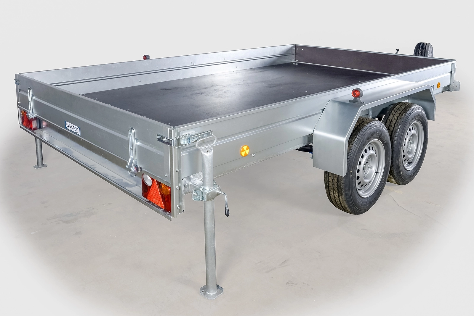 Рама, дышло и оси прицепа полностью оцинкованы методом горячего цинкования изнутри и снаружи. Борта и крылья из оцинкованной стали. Прицеп двухосный, с тормозом наката, кузов не откидывается, передний и задний борта откидные, с возможностью быстрого съёма, Дышло V-образное. Днище - ламинированная фанера. Подвеска колес (R14С) на четырёх полуэллиптических переменного сечения рессорах с гидравлическими амортизаторами. Размеры кузова 3500*1800 мм. Высота бортов 240 или 380 мм. Грузоподъёмность 2040 кг.
