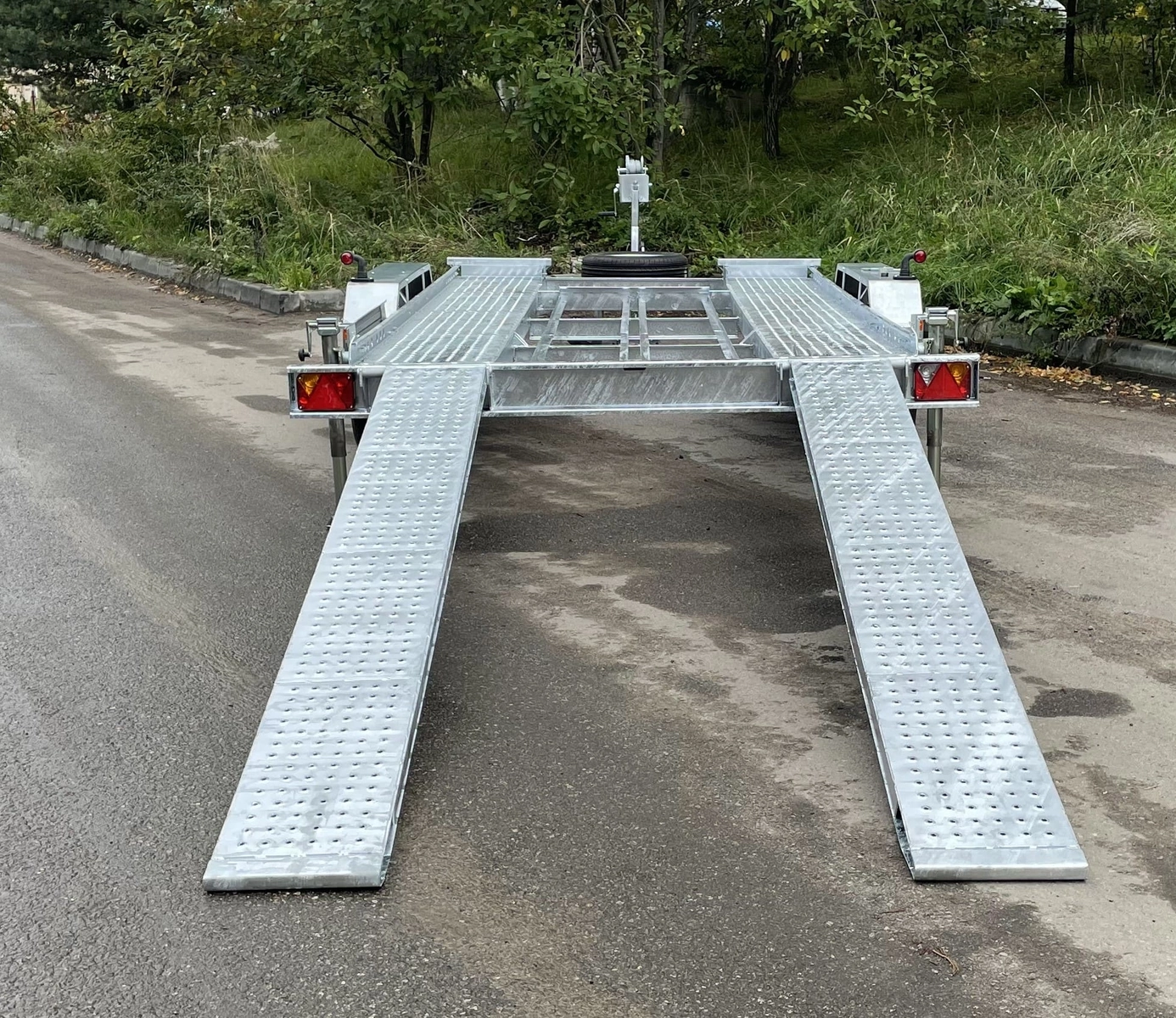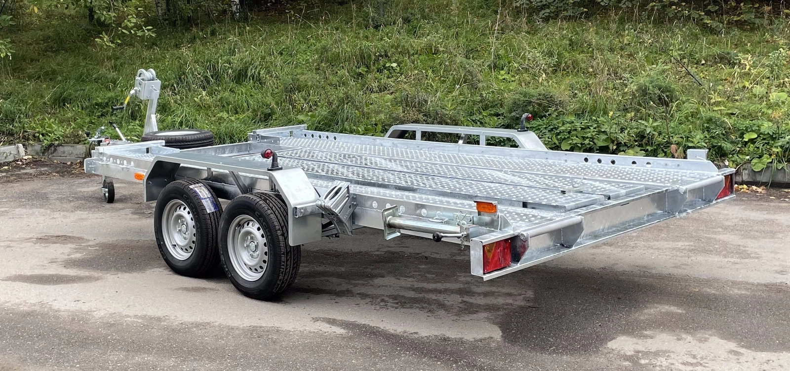 Легковой прицеп для перевозки автомобилей и другой техники. Прицеп двухосный, с тормозом.