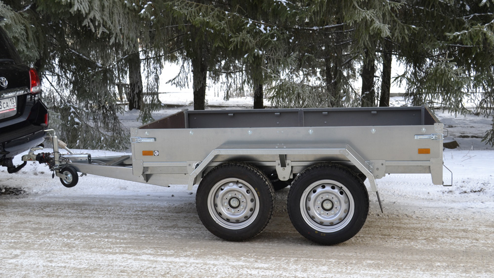 - Внутренние поверхности откидных бортов и настил платформы выполнены из влагостойкой фанеры толщиной 9 мм.