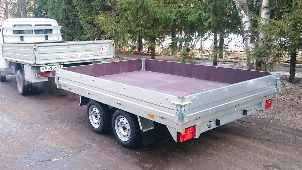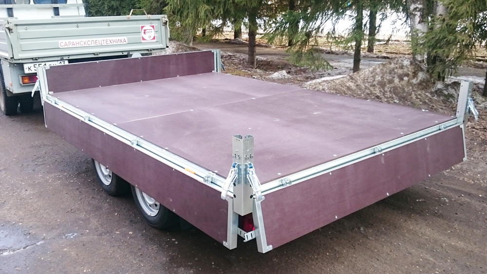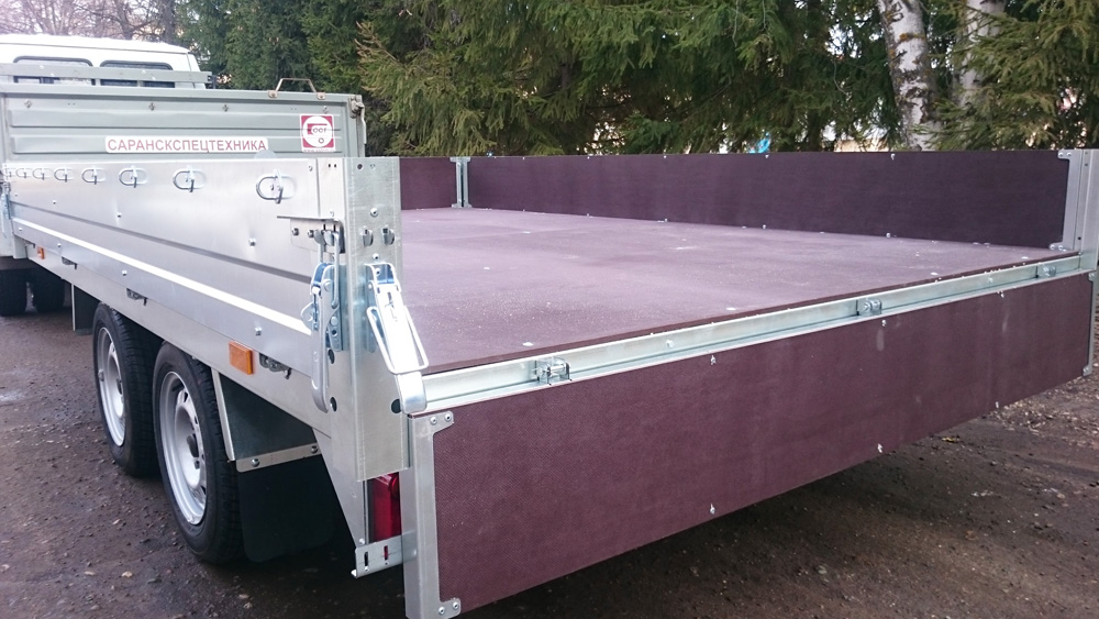 - Платформа и борта прицепа обшиты влагостойкой фанерой толщиной 9 мм с внутренней стороны, что улучшает эксплуатационные характеристики прицепа.