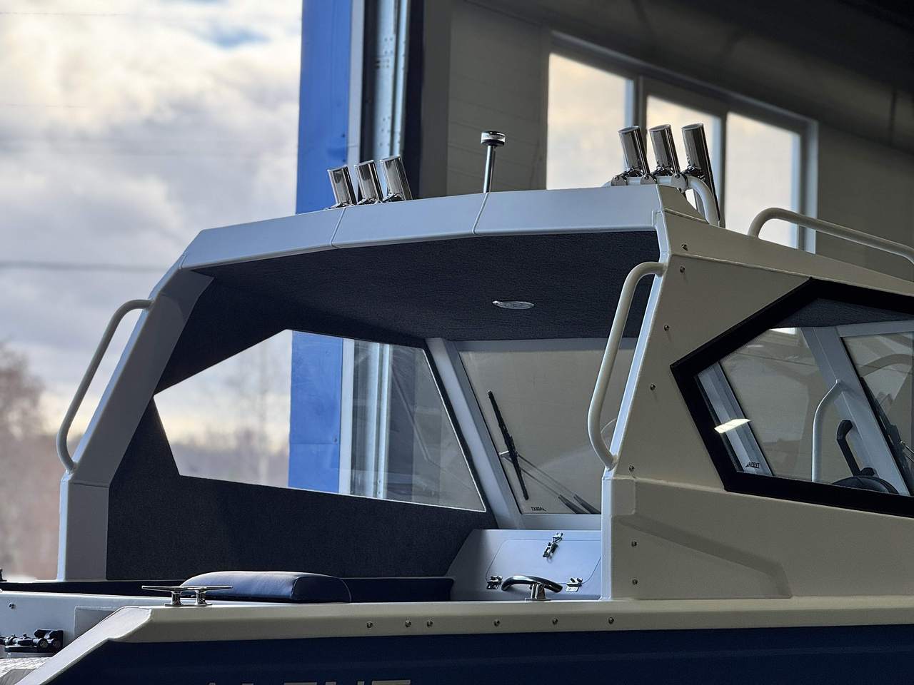 - Надежная надстройка обеспечивает дополнительную защиту от ветра, брызг и солнца, создавая комфортные условия для пассажиров даже в условиях непогоды.