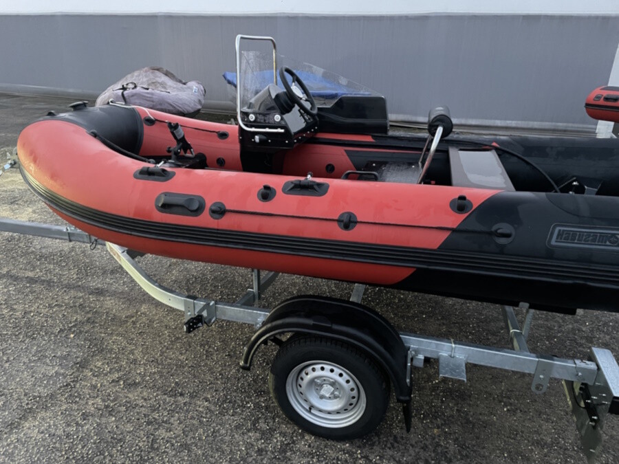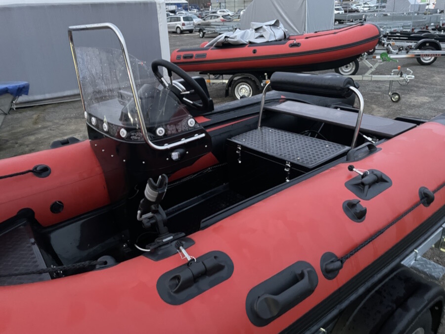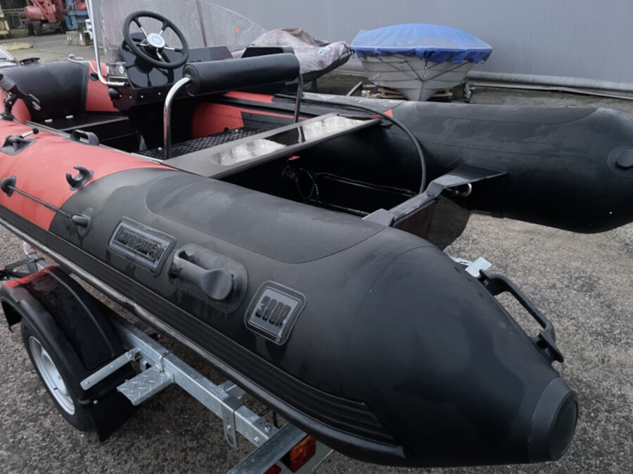 Оборудованный легкий трехкорпусной риб под установку подвесного лодочного мотора с дистанционным управлением