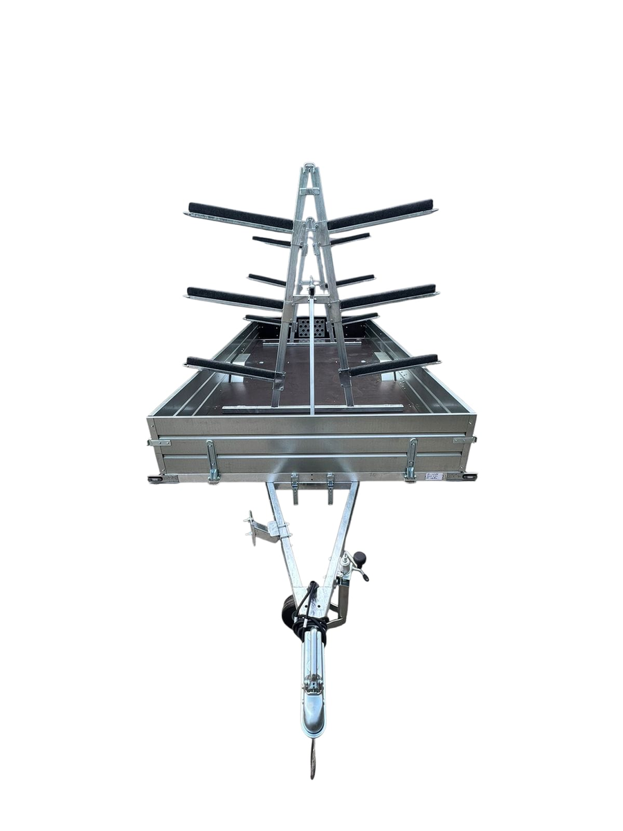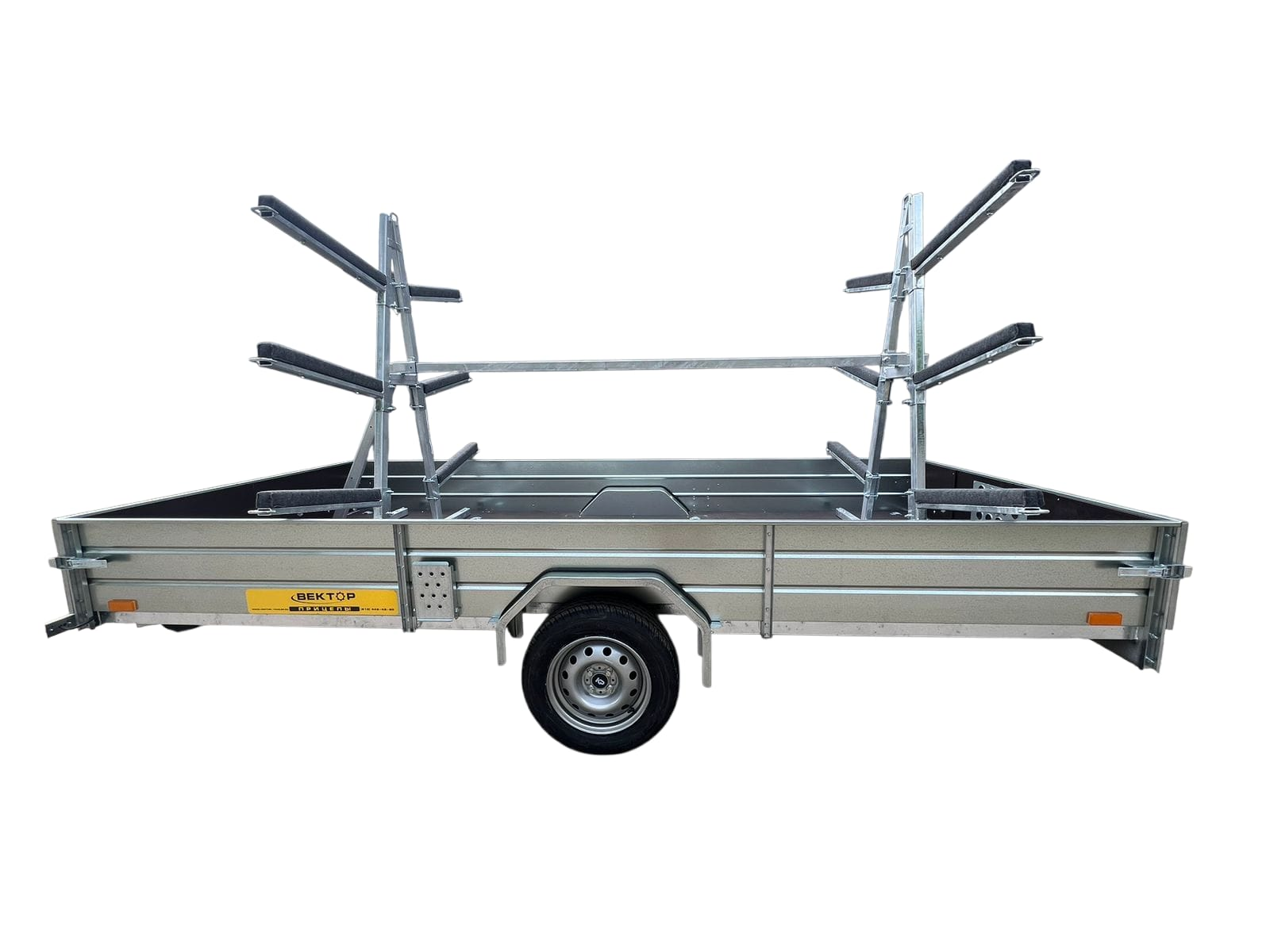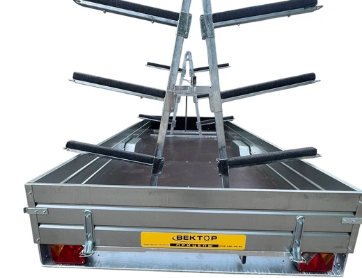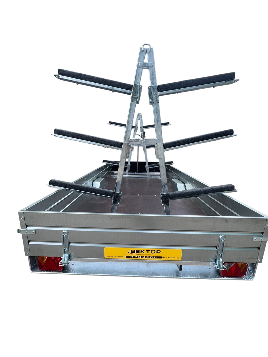 Легковой прицеп ЛАВ 81012С 4.0 (колея 1740 мм) предназначен для перевозки любых грузов, в том числе квадроцикла, мотоцикла, гидроцикла, снегохода, небольшой лодки, лодки ПВХ (надувной лодки) при использовании опции "Салазки для лодки" по всем видам дорог, на которых допускается эксплуатация легковых автомобилей. Рама, дышло и ось прицепа полностью оцинкованы методом горячего цинкования изнутри и снаружи. Борта и крылья из оцинкованной стали. Прицеп одноосный, без тормозов, снабжен откидным кузовом, передний и задний борта откидные, с возможностью быстрого съёма. Дышло V-образное. Днище - ламинированная фанера. Подвеска колес (R14) на двух полуэллиптических переменного сечения рессорах с гидравлическими амортизаторами. Размеры кузова 4000*1800 мм. Расстояние между крыльями 1500мм. Высота бортов 380 мм. Грузоподъёмность фактическая 700 кг.