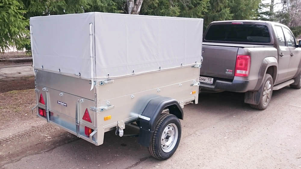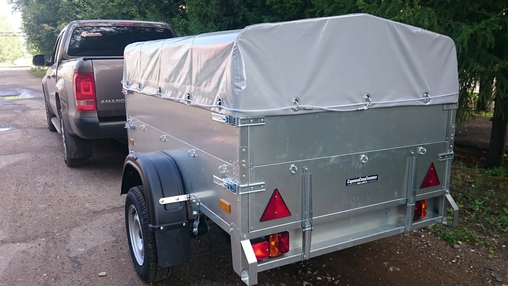 Одноосный прицеп ССТ-7132-03-C является наиболее массовым прицепом на рынке благодаря оптимальному соотношению цены и функциональных возможностей. Прицеп выпусается в трех исполнениях с незначительными отличиями по цене и функционалу. Прицеп полностью изготовлен из оцинкованного листа с применением лазерной технологии раскроя. Настил платформы и внутренние поверхности откидных бортов выполнены из влагостойкой фанеры толщиной 9 мм. Наиболее сложные узлы подвески (такие как – ступицы, амортизаторы, подрессорники) применены от отечественных серийных автомобилей. За дополнительную плату прицеп может быть укомплектован дугами, тентом пяти различных конструкций, надставными бортами, подъемными надставными бортами и передним опорным колесом. На прицеп могут быть установлены 15-дюймовые колеса (модель ССТ-7132-03-C R15, стоимость данного исполнения есть в прайс-листе).