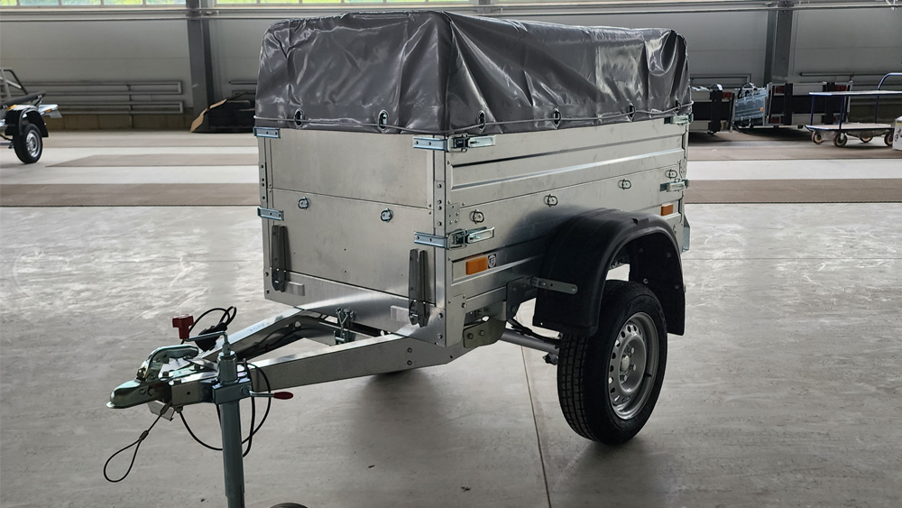 Основное назначение прицепа - перевозка туристического снаряжения в путешествиях. Отличительной особенностью данного прицепа является компактность и небольшая собственная масса (100 кг.) Прицеп полностью изготовлен из оцинкованного листа с применением лазерной технологии раскроя. Настил платформы и внутренние поверхности откидных бортов выполнены из влагостойкой фанеры толщиной 9 мм.