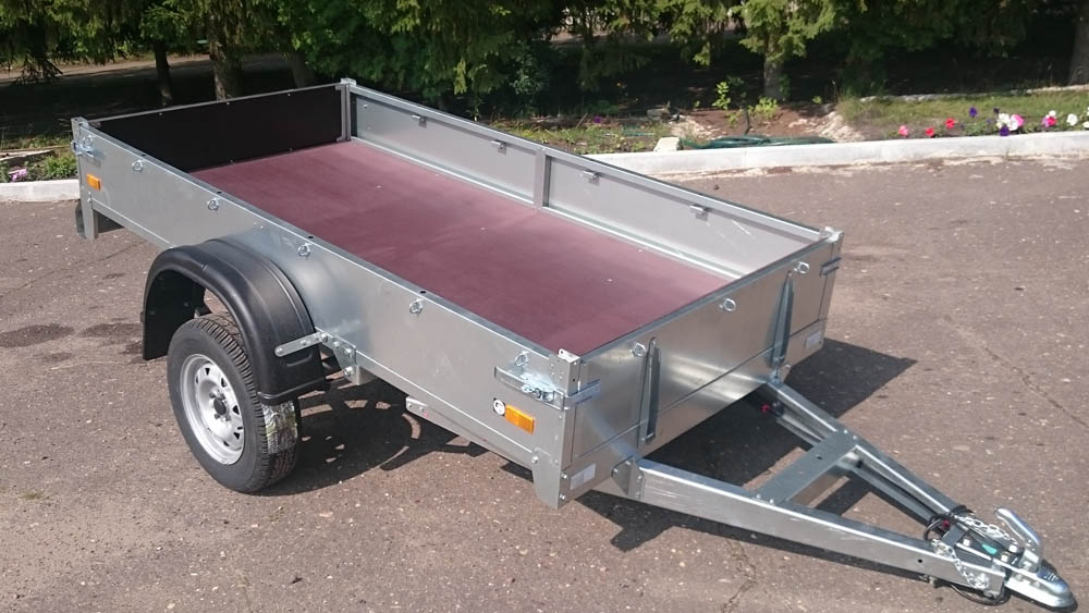 Одноосный прицеп ССТ-7132-02 К является наиболее массовым прицепом на рынке благодаря оптимальному соотношению цены и функциональных возможностей. Прицеп полностью изготовлен из оцинкованного листа с применением лазерной технологии раскроя. Настил платформы и внутренние поверхности откидных бортов выполнены из влагостойкой фанеры толщиной 9 мм. Наиболее сложные узлы подвески (такие как – ступицы, амортизаторы, подрессорники) применены от отечественных серийных автомобилей. За дополнительную плату прицеп может быть укомплектован дугами, тентом пяти различных конструкций, надставными бортами, подъёмными надставными бортами и передним опорным колесом. Надставные борта как обычные, так и подъемные позволяют установить любой из штатных тентов. Прицеп имеет комплектацию на колесах размерностью 15 дюймов (модель ССТ-7132-02 К R15, стоимость данного исполнения есть в прайс-листе).