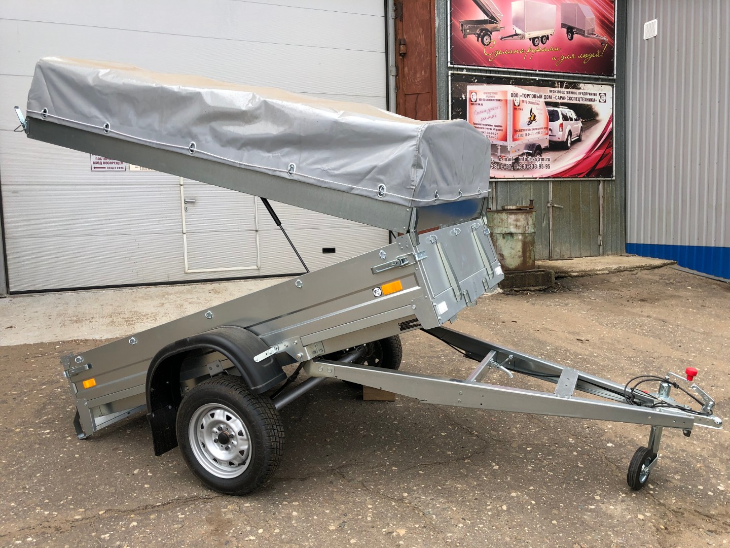 Одноосный прицеп ССТ-7132-2К-С является наиболее массовым прицепом на рынке благодаря оптимальному соотношению цены и функциональных возможностей. Прицеп полностью изготовлен из оцинкованного листа с применением лазерной технологии раскроя. Настил платформы и внутренние поверхности откидных бортов выполнены из влагостойкой фанеры толщиной 9 мм. Наиболее сложные узлы подвески (такие как – ступицы, амортизаторы, подрессорники) применены от отечественных серийных автомобилей. За дополнительную плату прицеп может быть укомплектован дугами, тентом пяти различных конструкций, надставными бортами, подъёмными надставными бортами и передним опорным колесом. Надставные борта как обычные, так и подъемные позволяют установить любой из штатных тентов. Прицеп имеет комплектацию на колесах размерностью 15 дюймов (модель ССТ-7132-2К-С R15, стоимость данного исполнения есть в прайс-листе).