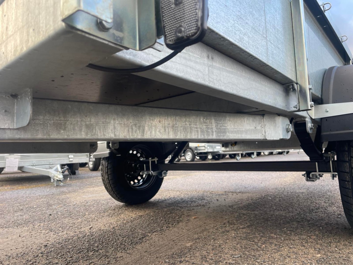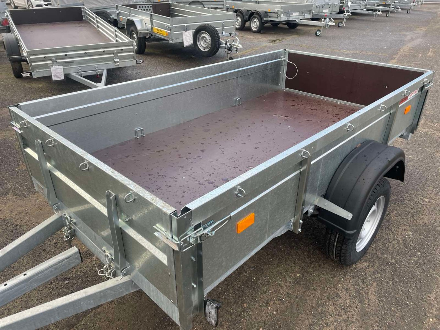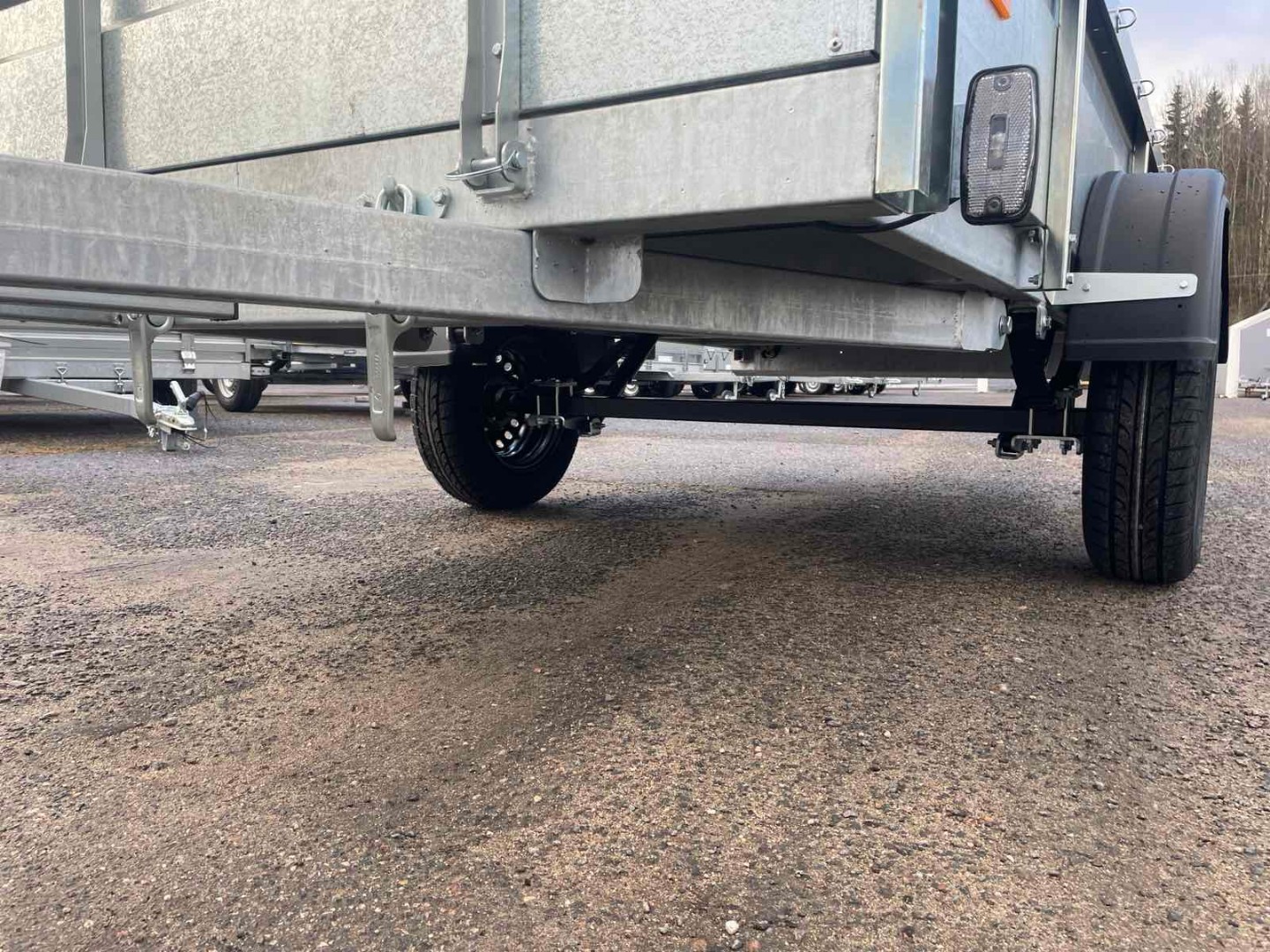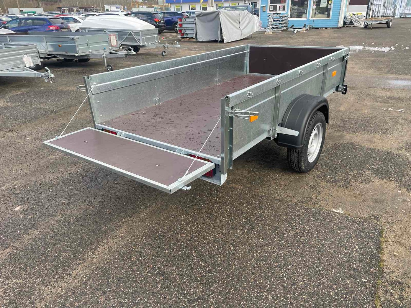 Борта гнутые с ребрами жесткости, монолитные по всей длине прицепа, высотой 400мм. Передний задний борт откидные быстросъемные с увеличенными по высоте петлями, усилены фанерой, которая утоплена внутрь борта и не «съедает» внутренний размер прицепа.