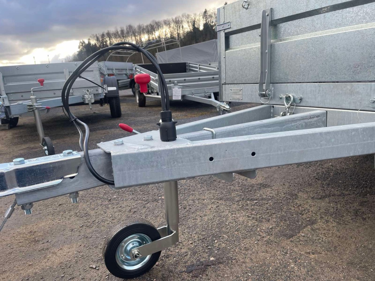 Качественная светотехника от лучших европейских производителей. В комплект входят 2 задних мультифункциональных фонаря, полной системой проложенных кабелей и лампочками накаливания (стоп-сигнал, указатели поворота, габаритный свет с подсветкой номера, противотуманный свет с одной стороны, задние треугольные светоотражатели), 2 передних габаритных LED-фонаря с белыми отражателями, боковые оранжевые светоотражатели. Проводка состоит из двух независимых жгутов на обе стороны прицепа, оборудована семиконтактным штекером.