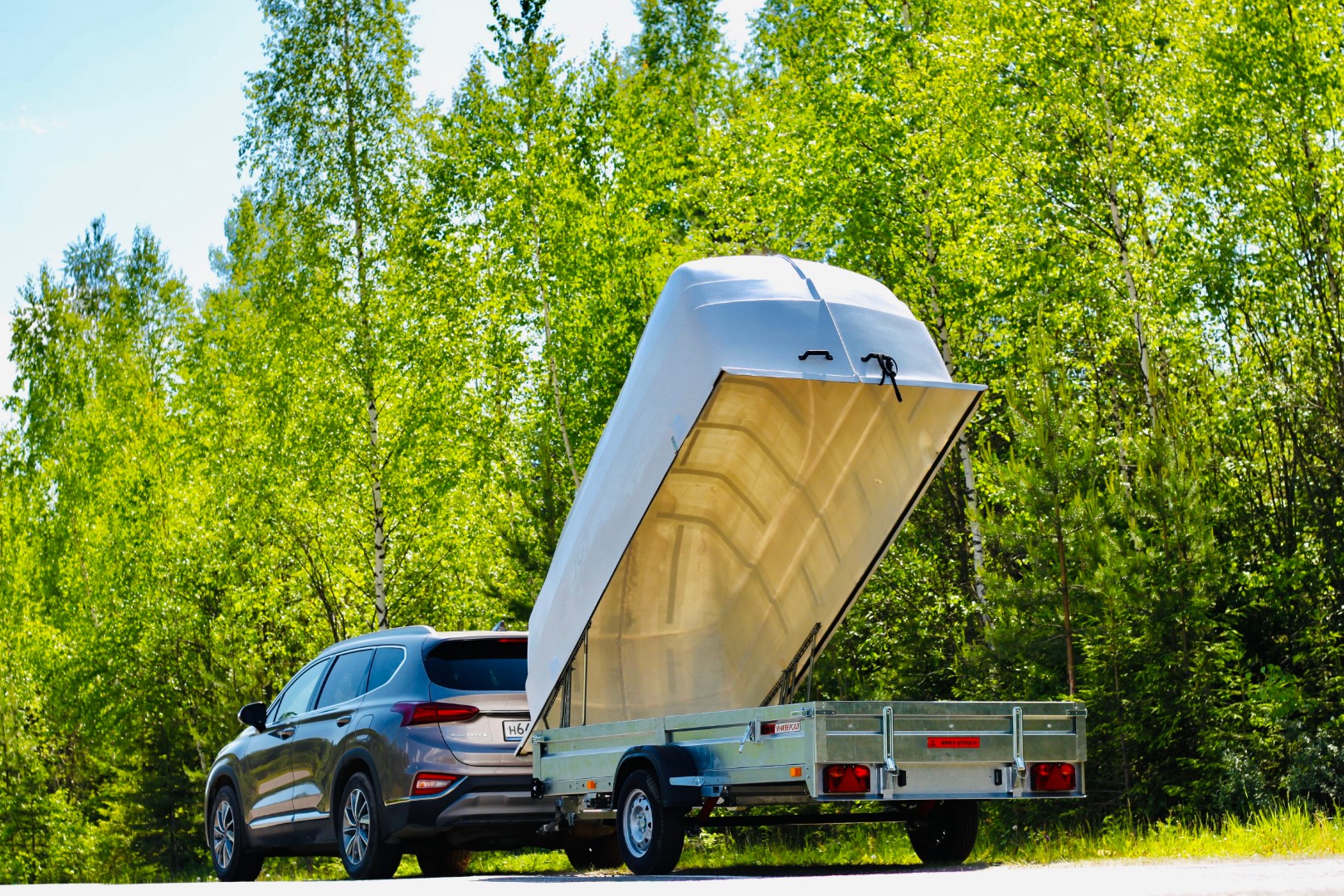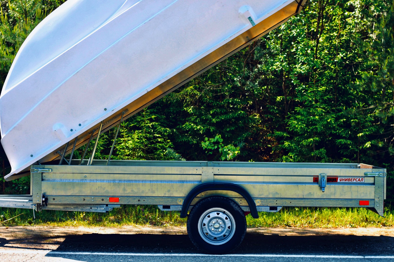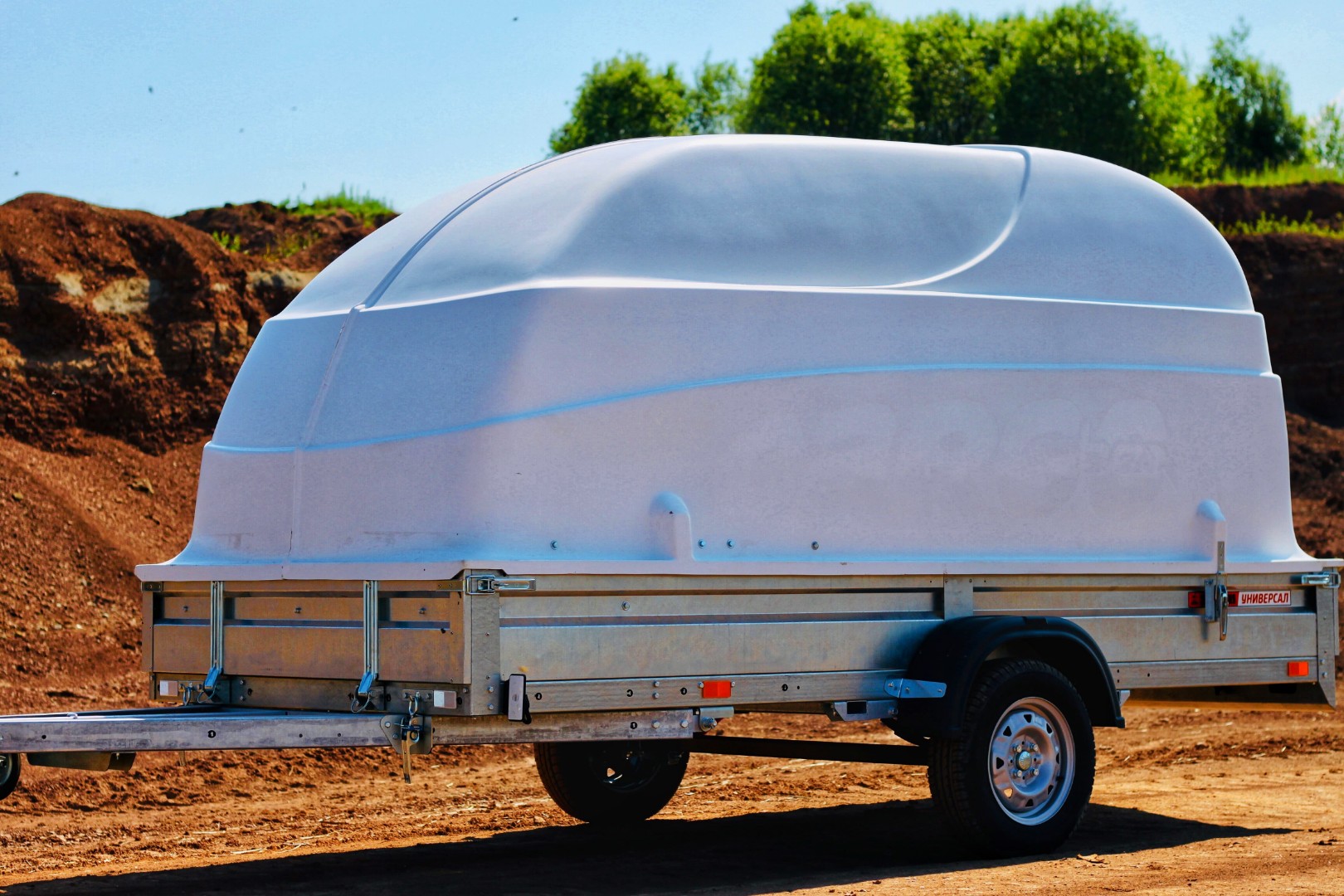 Используется только с пластиковой крышкой либо без нее, не предусмотрена комплектация прицепа тентом и каркасом. При необходимости фиксации в самосвальном режиме рекомендуется использование двух газовых упоров (приобретаются дополнительно).