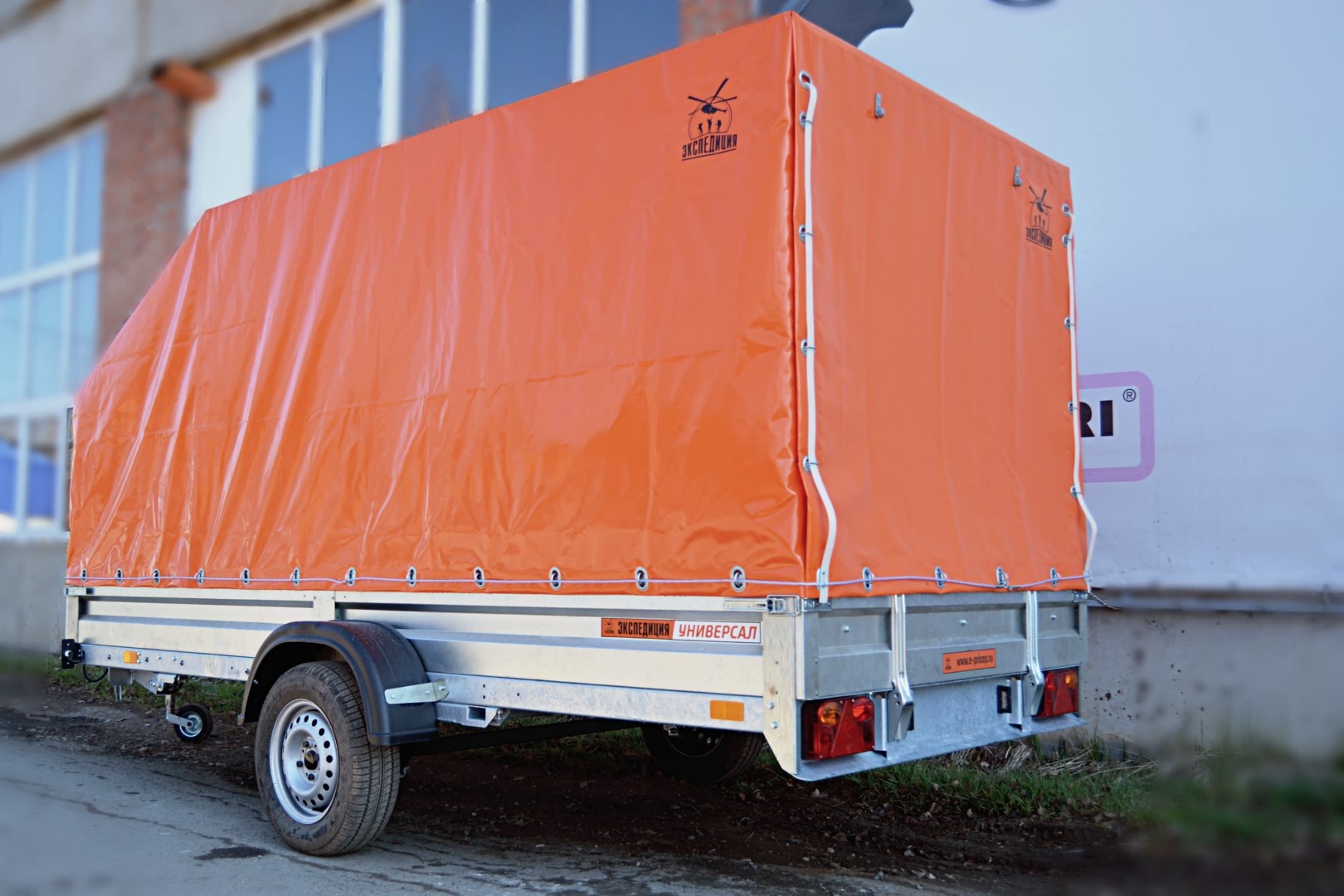 - Прицеп на рессорно-амортизаторной подвеске с днищем и светотехникой