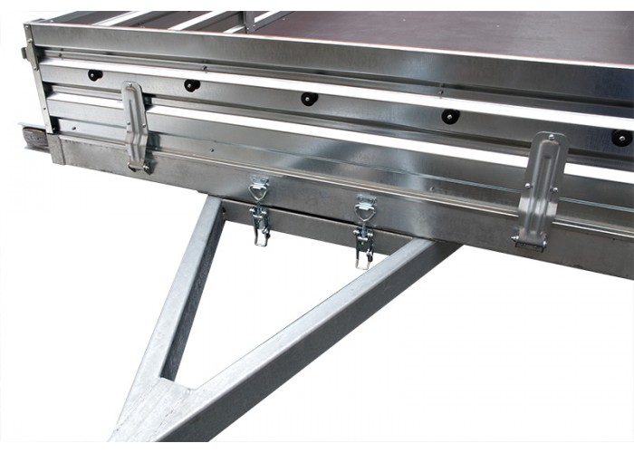 ● Оцинкованные стальные стойки бортов оборудованы петлями крепления груза (4 шт.). Благодаря дополнительным разделительным стойкам повышается жёсткость бортов и их сопротивление излому.
