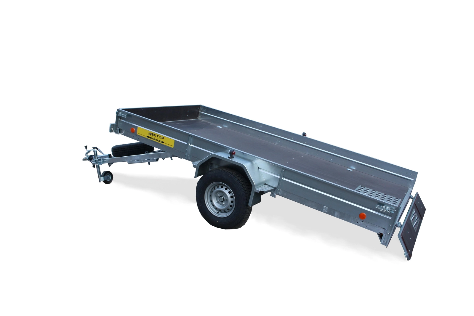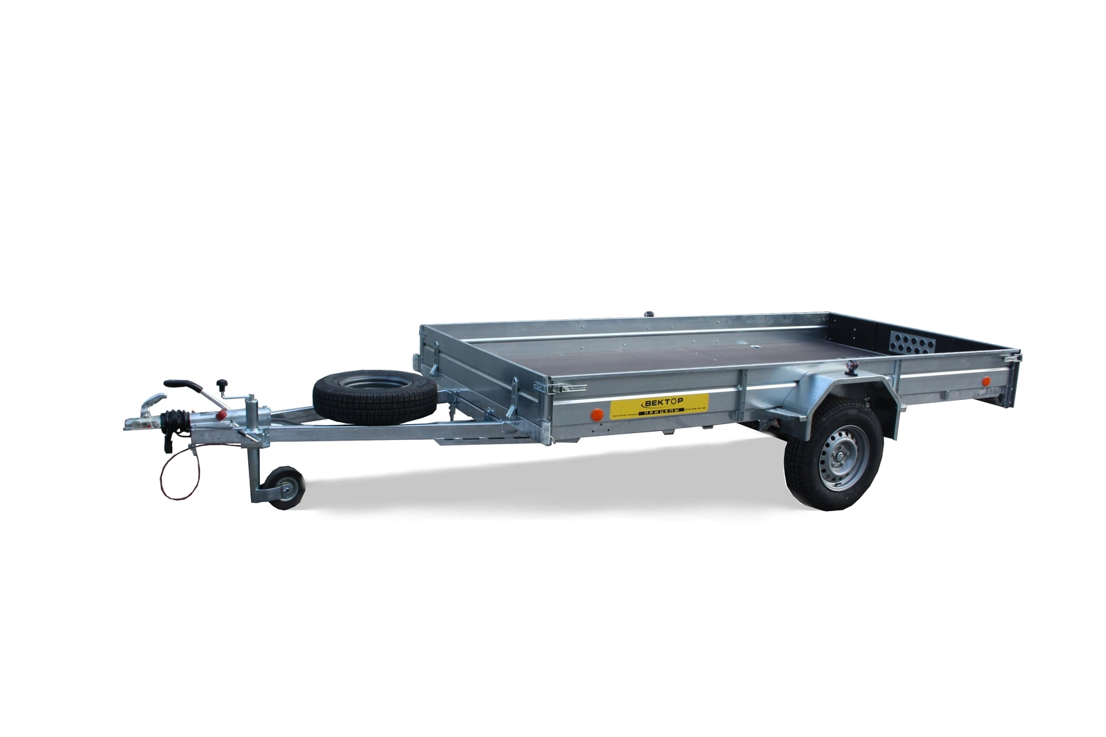 Рама, дышло и ось прицепа полностью оцинкованы методом горячего цинкования изнутри и снаружи. Борта и крылья из оцинкованной стали. Прицеп одноосный, с тормозом наката, снабжен откидным кузовом, передний и задний борта откидные, с возможностью быстрого съёма. Дышло V-образное. Днище - ламинированная фанера. Подвеска колес (R14С) на двух полуэллиптических с переменным сечением рессорах с гидравлическими амортизаторами. Размеры кузова 3500*1500 мм. Высота бортов 240 или 380 мм. Грузоподъёмность 1080 кг.