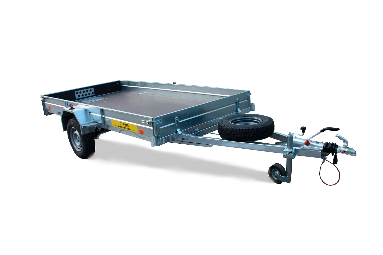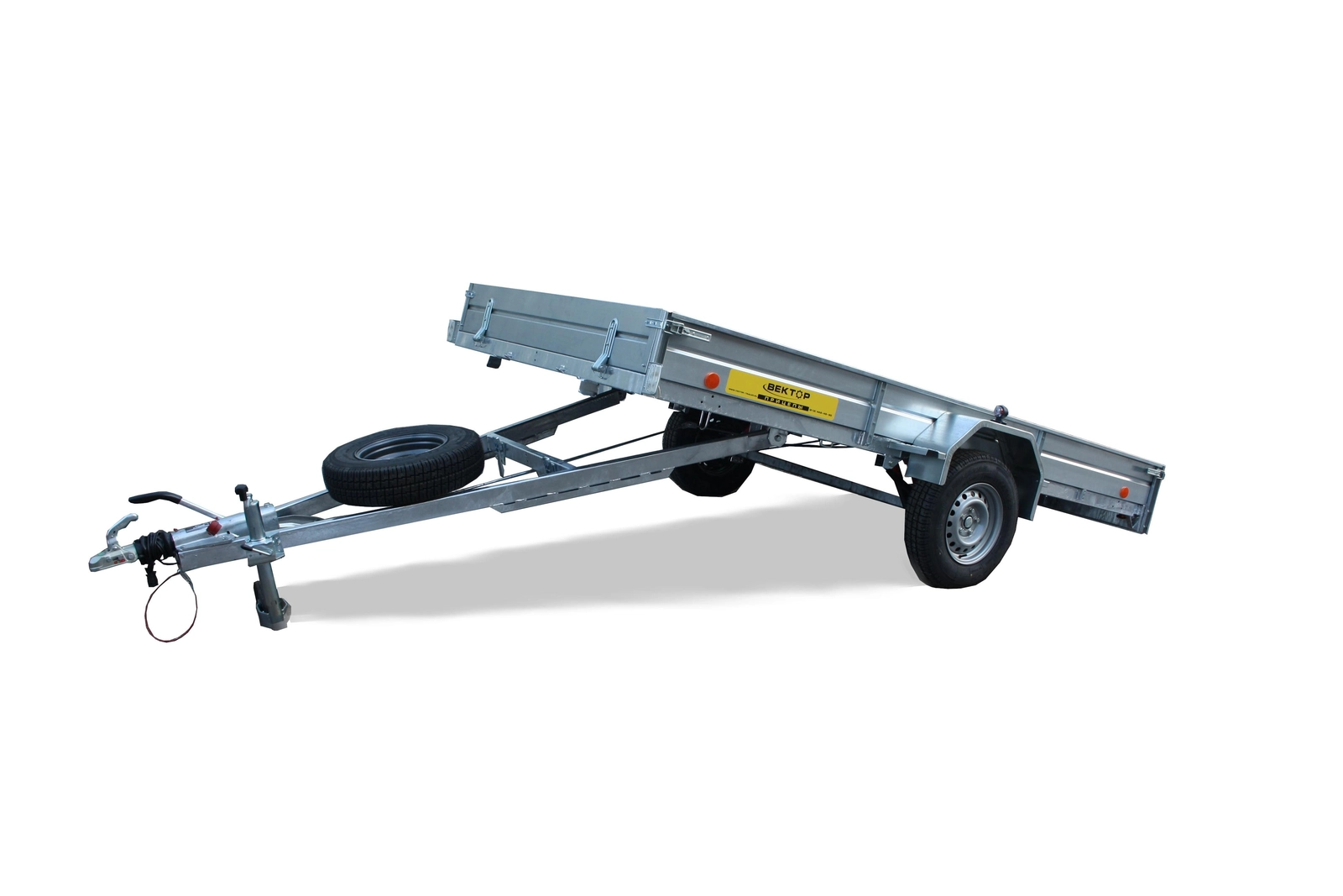 Рама, дышло и ось прицепа полностью оцинкованы методом горячего цинкования. Борта, крылья и подножки из оцинкованной стали. Прицеп одноосный, с тормозом наката, снабжен откидным кузовом, передний и задний борта откидные, с возможностью быстрого съёма. Дышло V-образное. Днище - ламинированная фанера. Подвеска колес (R14С) на двух полуэллиптических переменного сечения рессорах с гидравлическими амортизаторами. Размеры кузова 3500*2000 мм. Высота бортов 240 или 380 мм. Грузоподъёмность 1326 кг.