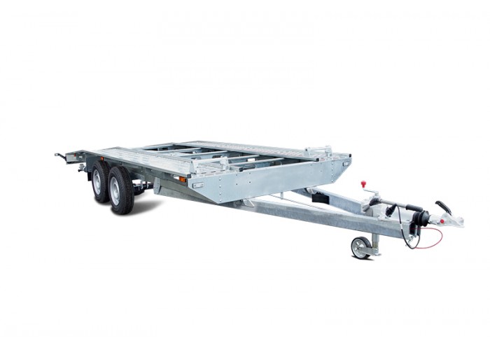 ● Оцинкованный стальной настил платформы выполнен с применением технологии штамповки, которая увеличивает жёсткость лонжерона и снижает собственный вес конструкции. Он оборудован передвижными колёсными упорами (2 шт.) для фиксации автомобиля.