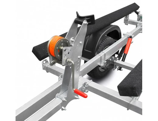 ● Передвижные носовые упоры имеют регулируемую высоту и угол наклона. Они могут быть отрегулированы и установлены в наиболее удобное положение для моделей перевозимой техники. Лебёдки облегчают погрузку техники на прицеп и страхуют её при спуске на воду.