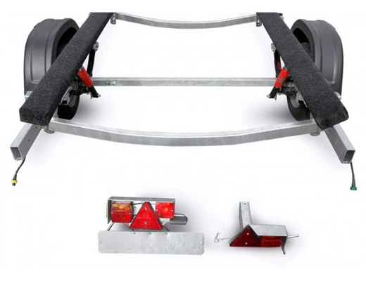 ● Оцинкованная стальная рама выполнена из замкнутого профиля, имеет большой запас прочности и позволяет уберечь жгут электропроводки от внешних повреждений по всей длине прицепа. Изогнутая конструкция поперечин рамы обеспечивает максимально низкую посадку судна, что снижает центр тяжести и повышает устойчивость прицепа во время движения.