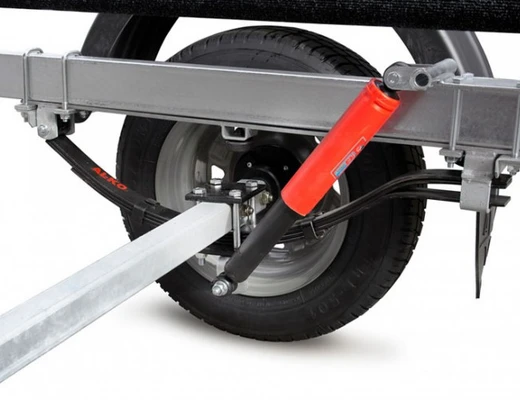 ● Рессорная подвеска (2 рессоры по 4 листа) с гидравлическими амортизаторами сохраняет стабильную плавность хода при разной загруженности прицепа.