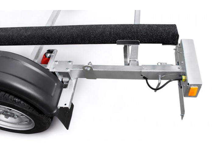 ● Оцинкованное съёмное дышло из стального замкнутого профиля установлено на болтовых соединениях, что позволяет при необходимости отсоединить его от рамы и тем самым уменьшить занимаемую площадь в гараже или на стоянке.