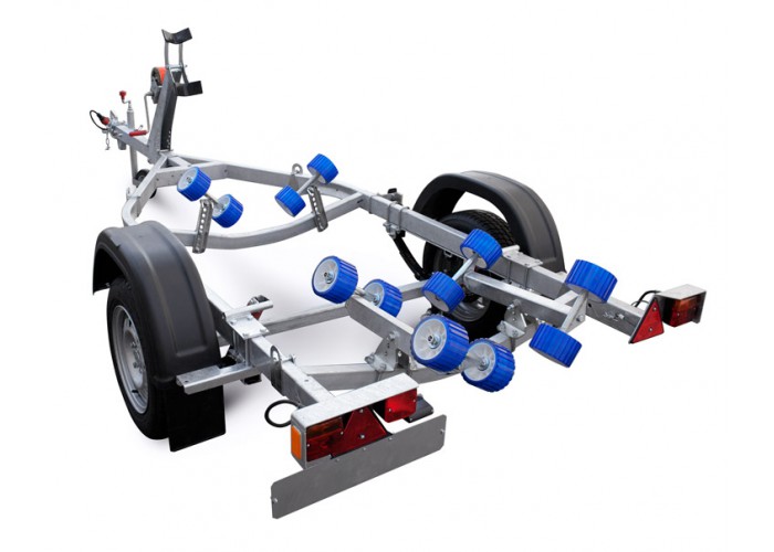● Роликовые опоры обеспечивают удобный спуск судна на воду и его подъём на сложных, необорудованных участках берега, где нет возможности заезда прицепа на достаточную глубину. Две передние опоры с двойными роликовыми модулями могут быть установлены в любой точке поперечины рамы, имеют регулируемый угол наклона и регулируемую высоту. Это позволяет настроить их в оптимальное положение под обводы корпуса перевозимого судна. Две задние опоры с четырьмя роликами могут быть установлены в любой точке поперечины рамы, их оцинкованный кронштейн имеет саморегулируемый угол наклона, а каждая пара роликов самостоятельно подстраивается под обводы судна. Такая конструкция облегчает центрирование и обеспечивает удобную поддержку судна и при его загрузке и выгрузке под большим углом.