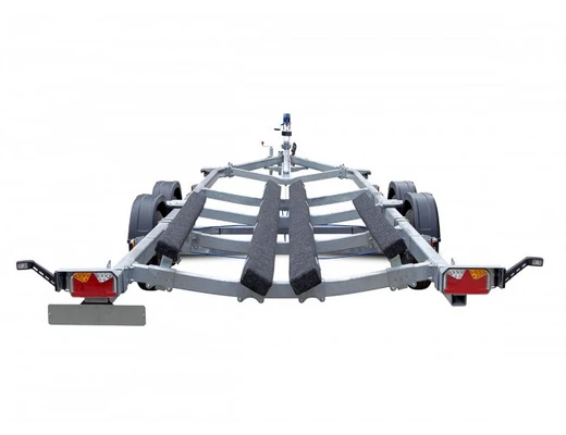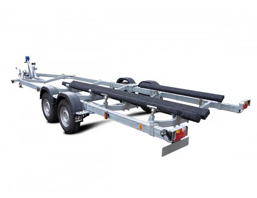 ● Ложементы могут быть установлены в любой точке поперечин рамы, имеют регулируемый угол наклона и регулируемую высоту. Это позволяет произвести наиболее точную регулировку, избежать давления на продольные реданы, а также расположить технику максимально низко, тем самым обеспечить устойчивость прицепа при движении и осуществлять спуск судна на воду при меньшей глубине. При перевозках и хранении судна на прицепе ложементы позволяют равномерно распределить вес и уменьшить давление на корпус судна.