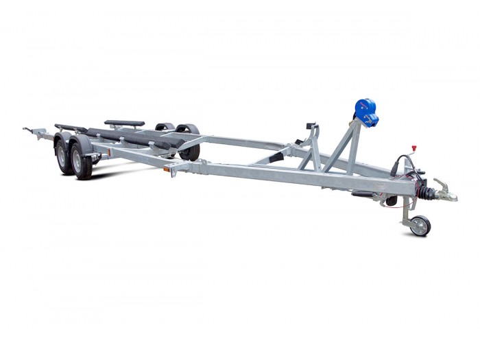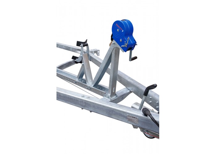 ● Передвижной носовой упор имеет регулируемую высоту и угол наклона. Он может быть отрегулирован и установлен в наиболее удобное положение для установки перевозимой техники. Лебёдка облегчает погрузку техники на прицеп и страхует её при спуске на воду.