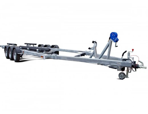 ● Передвижной носовой упор имеет регулируемую высоту и угол наклона. Он может быть отрегулирован и установлен в наиболее удобное положение для установки перевозимой техники. Лебёдка облегчает погрузку техники на прицеп и страхует её при спуске на воду.