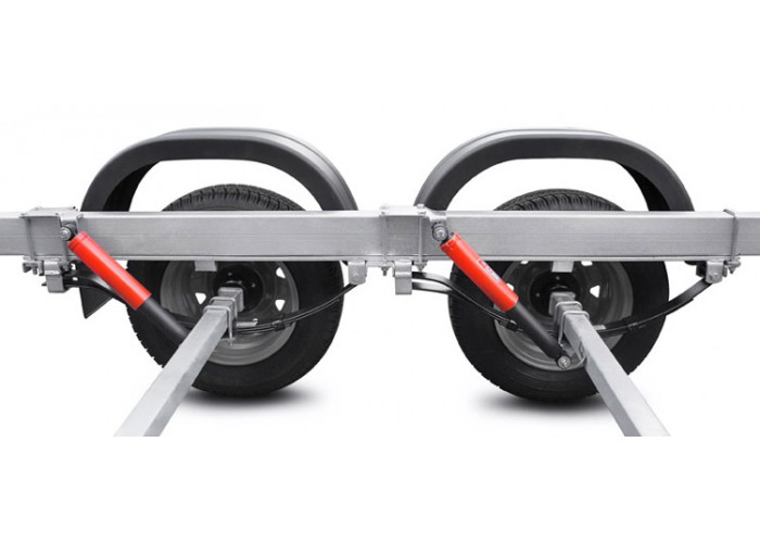 ● Рессорная подвеска (4 рессоры по 3 листа) с гидравлическими амортизаторами сохраняет стабильную плавность хода при разной загруженности прицепа.