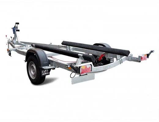 ● Ложементы могут быть установлены в любой точке поперечин рамы, имеют регулируемый угол наклона и регулируемую высоту. Это позволяет установить их в наиболее удобное положение, избежать давления на продольные реданы, а также расположить технику максимально низко, тем самым обеспечить устойчивость прицепа при движении и осуществлять спуск судна на воду меньшей глубине. При перевозках и хранении судна на прицепе ложементы позволяют равномерно распределить вес техники и уменьшить давление на корпус судна.