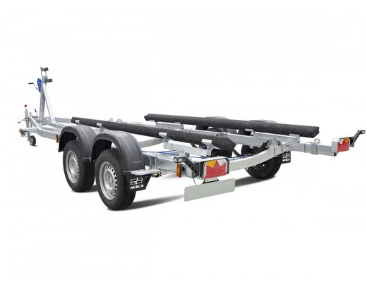 ● Ложементы могут быть установлены в любой точке поперечин рамы, имеют регулируемый угол наклона и регулируемую высоту. Это позволяет установить их в наиболее удобное положение, избежать давления на продольные реданы, а также расположить технику максимально низко, тем самым обеспечить устойчивость прицепа при движении и осуществлять спуск судна на воду меньшей глубине. При перевозках и хранении судна на прицепе ложементы позволяют равномерно распределить вес техники и уменьшить давление на корпус судна.