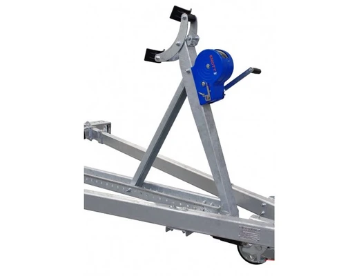 ● Передвижной носовой упор имеет регулируемую высоту и угол наклона. Он может быть отрегулирован и установлен в наиболее удобное положение для установки перевозимой техники. Лебёдка облегчает погрузку техники на прицеп и страхует её при спуске на воду.