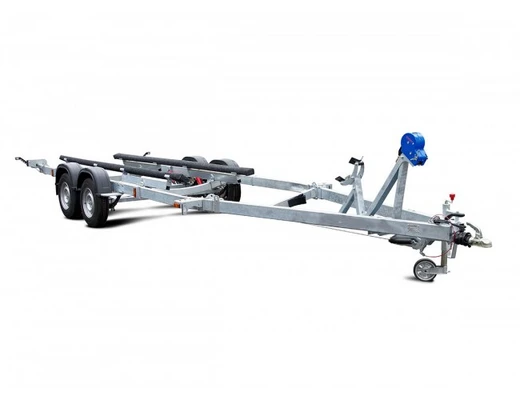 ● Передвижной носовой упор имеет регулируемую высоту и угол наклона. Он может быть отрегулирован и установлен в наиболее удобное положение для установки перевозимой техники. Лебёдка облегчает погрузку техники на прицеп и страхует её при спуске на воду.