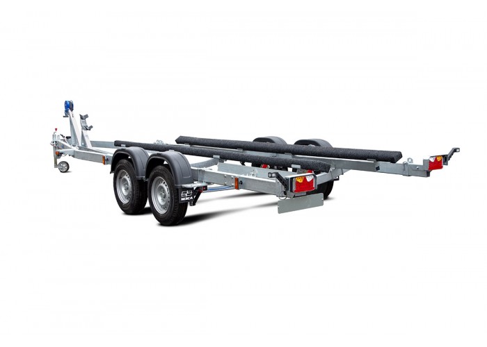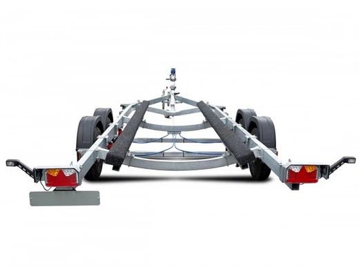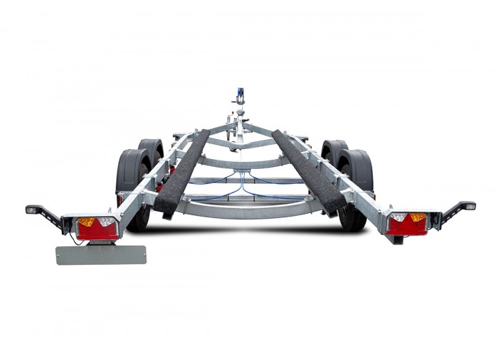 ● Ложементы могут быть установлены в любой точке поперечин рамы, имеют регулируемый угол наклона и регулируемую высоту. Это позволяет установить их в наиболее удобное положение, избежать давления на продольные реданы, а также расположить технику максимально низко, тем самым обеспечить устойчивость прицепа при движении и осуществлять спуск судна на воду меньшей глубине. При перевозках и хранении судна на прицепе ложементы позволяют равномерно распределить вес техники и уменьшить давление на корпус судна.