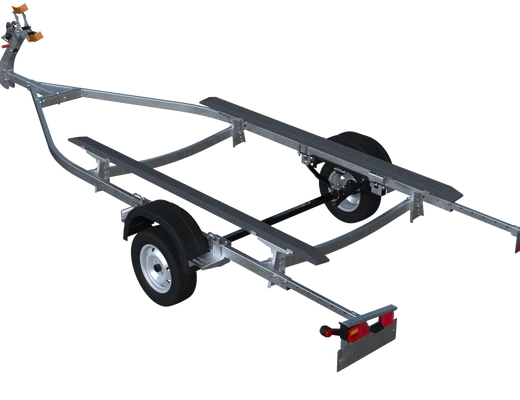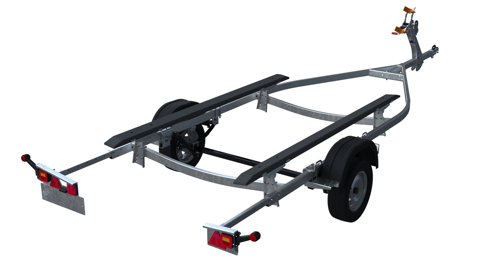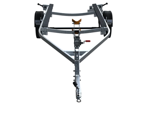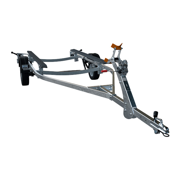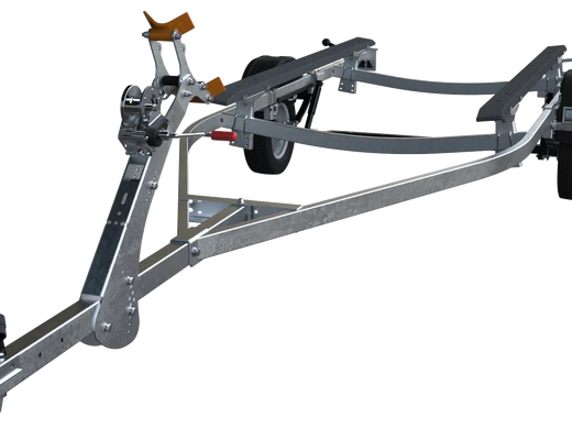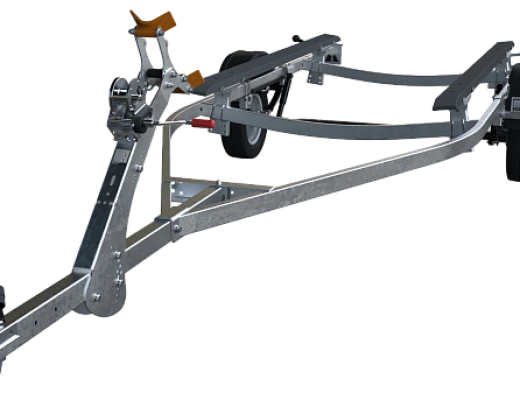 Труба дышла 80х60 крепится к раме на болтовых соединениях. Регулируемый носовой упор с лебёдкой имеет несколько вариантов настройки положения и наклона. Ложементы могут менять положение относительно поперечин рамы, имеют регулируемый угол наклона и регулируемую высоту.