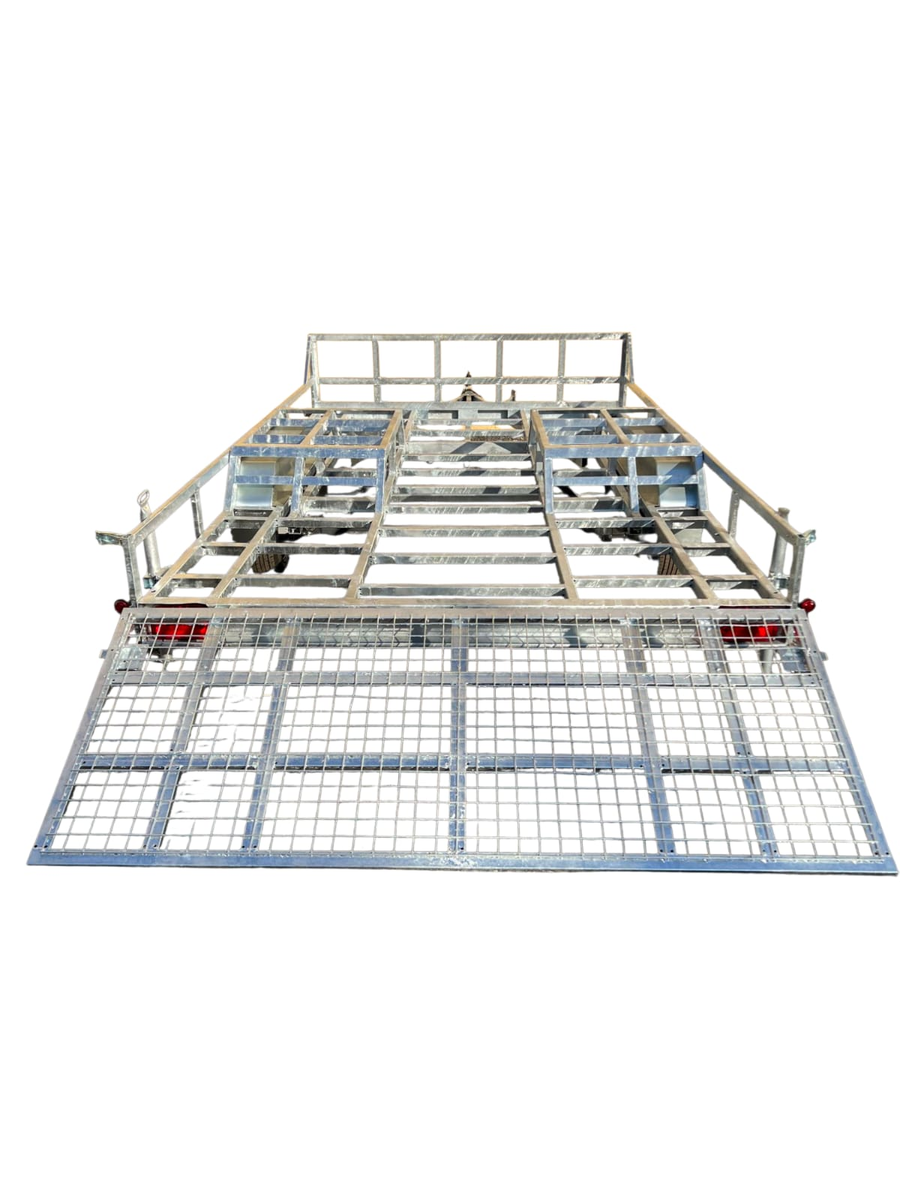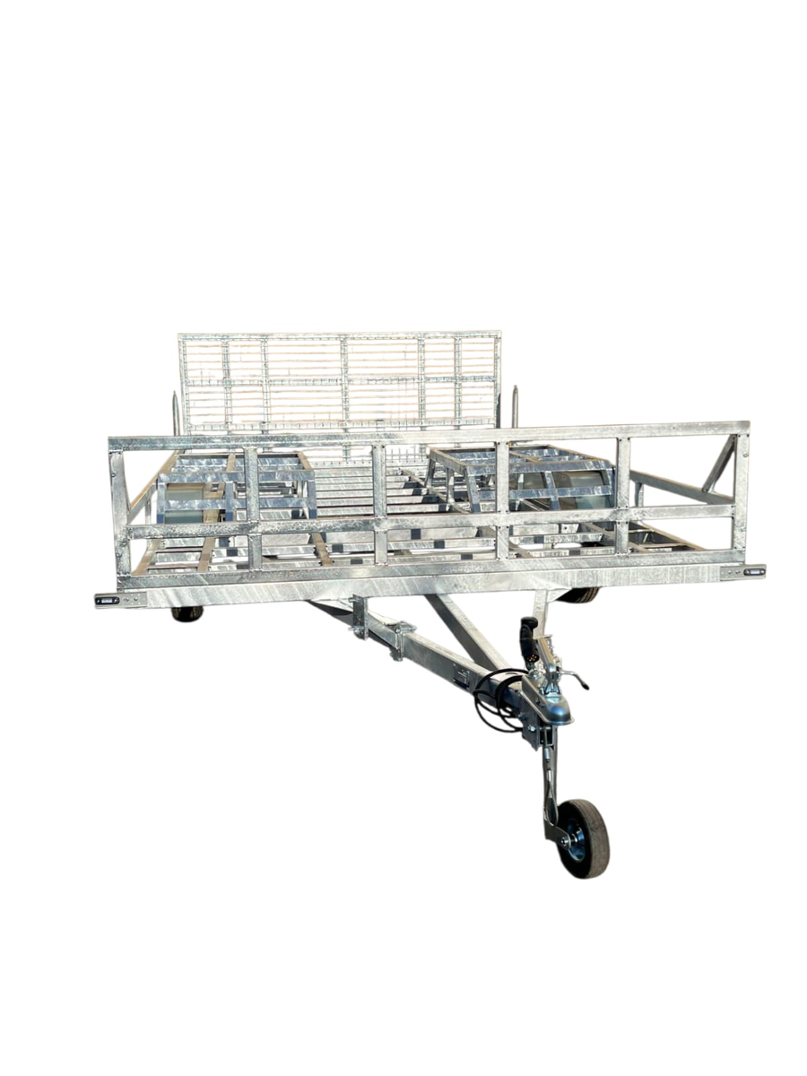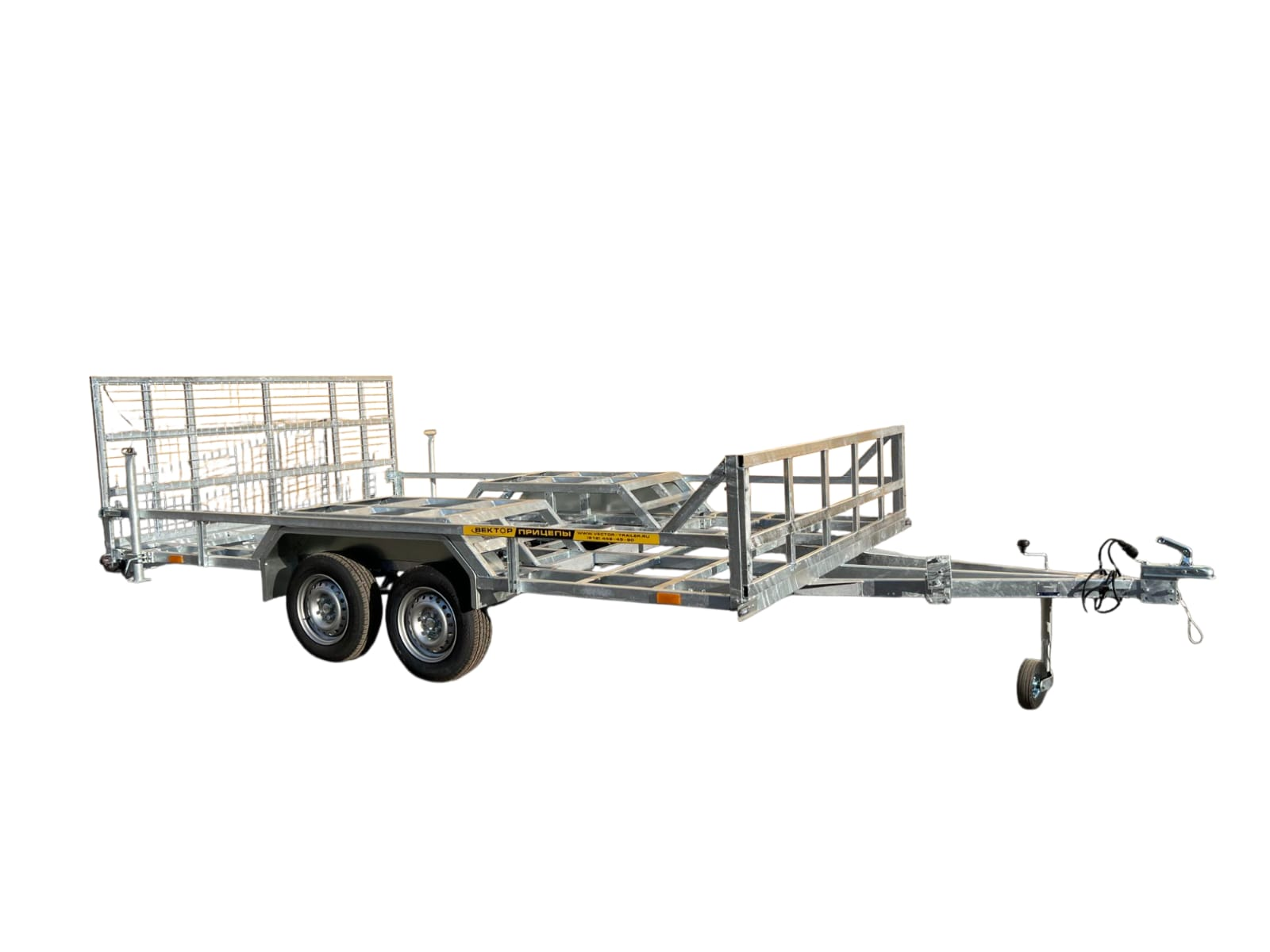Двухосный прицеп без тормоза ЛАВ-81013А 4.0 Болотоход предназначен для перевозки Вездеходов - болотоходов. Размер кузова 4000х2360. Рама прицепа сварная из труб и профилей, оцинкованная "горячим способом". Прицеп оснащён задним борт-трапом для заезда техники. Опорные стойки на задней части рамы прицепа, предотвращающие опрокидывание прицепа, при заезде техники, входят в стандартную комплектацию.