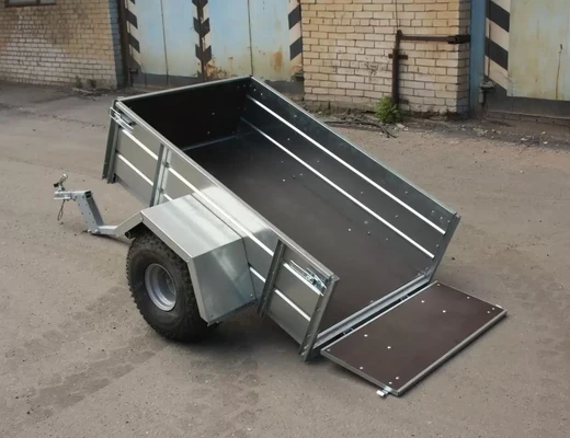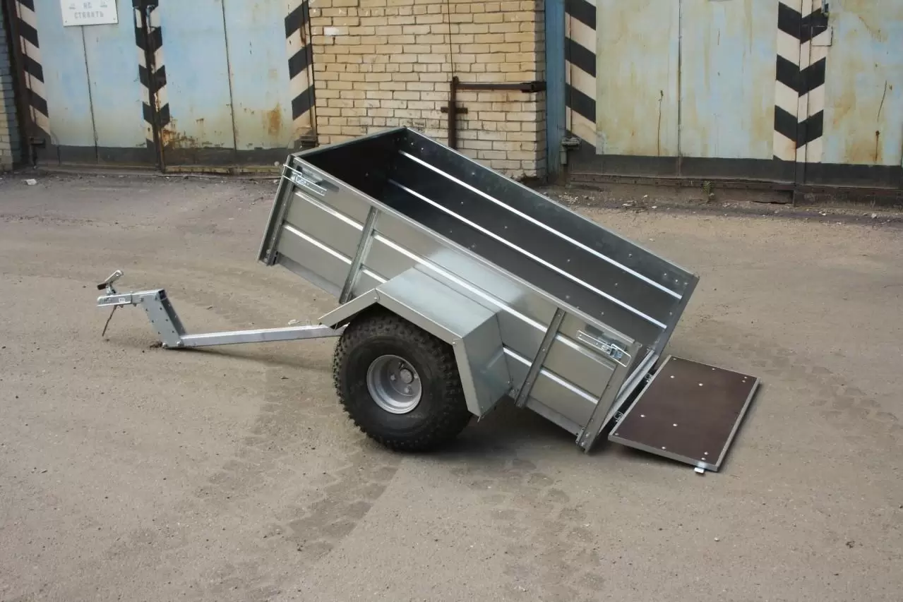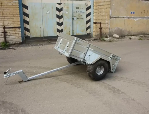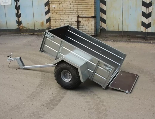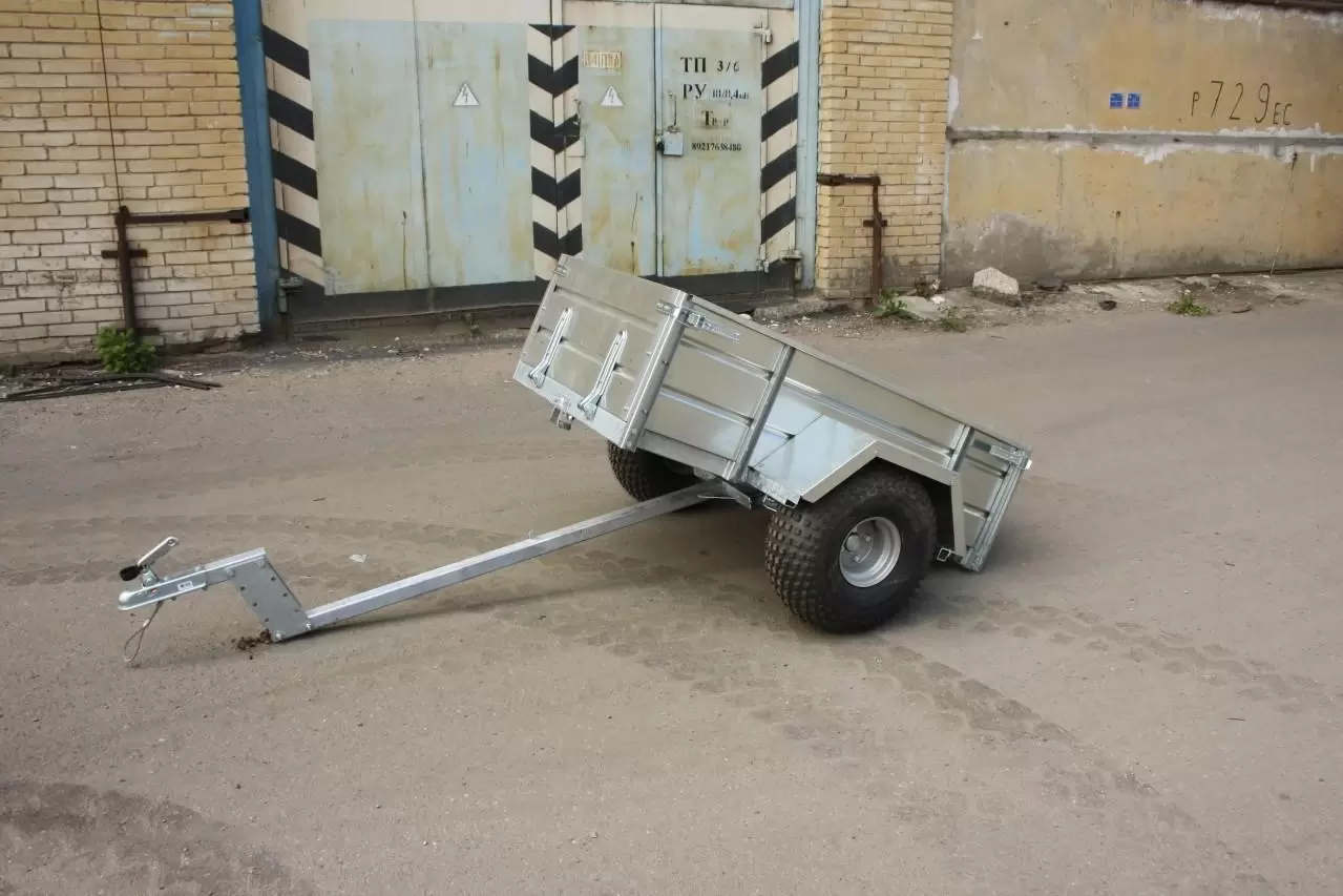 Прицеп на квадроцикл расширяет функциональность четырехколесника. Его можно применять для перевозки грузов или экипировки. Может использоваться только вне дорог общего пользования. Рама, дышло и ось прицепа полностью оцинкованы методом горячего цинкования. Борта и крылья из оцинкованной стали. Прицеп одноосный, снабжен откидным кузовом, передний и задний борта откидные, с возможностью быстрого съёма. Пол прицепа и внутренние поверхности откидных бортов выполнены из ламинированной фанеры. Колея прицепа совпадает с колеёй большинства квадроциклов. Колёса могут быть как R13 (ВАЗовские), так и R8 (квадроциклетные).