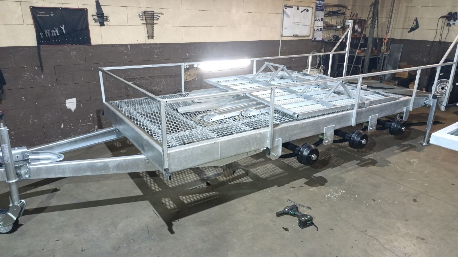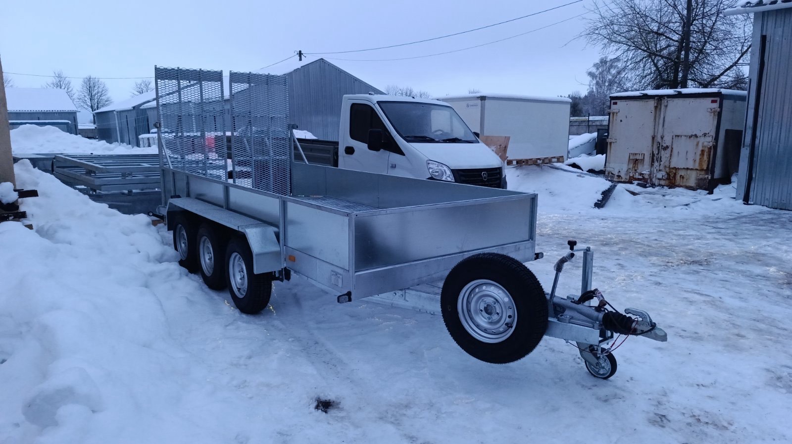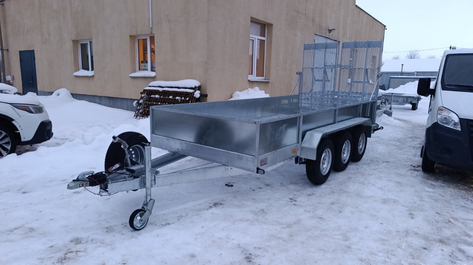 Так же скос 1 метр в задней части прицепа для удобства заезда техники